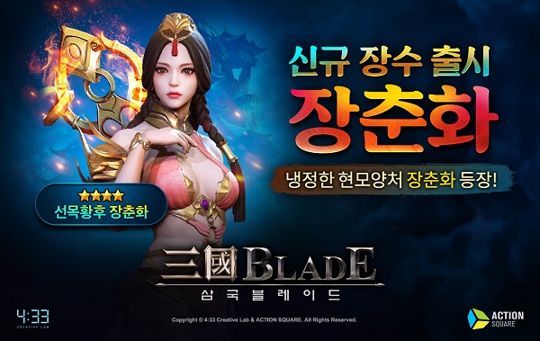 [뉴스비전e 장연우 기자] 네시삼십삼분(대표 장원상, 박영호, 이하 4:33)은 대작 모바일 게임 ‘삼국블레이드’에 신규 장수 추가 업데이트를 진행했다.