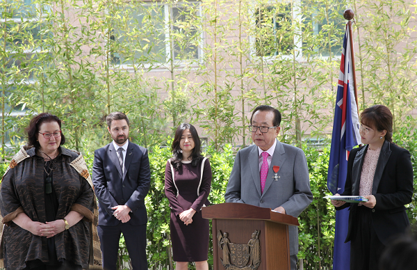 서울 용산구 뉴질랜드 대사관저에서 진행된 이날 훈장 수여식에는 클레어 펀리(Clare Fearnley) 주한 뉴질랜드 대사와 동원그룹 김재철 회장, 한덕수 전 국무총리 등 주요인사들이 참석했다.