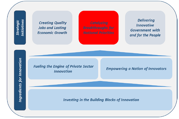 미국은 지난 2015년 '국가 혁신을 위한 전략 과제(A Strategy for American Innovation)'를 선정했다. 첨단제조업, 정밀의학, 뇌과학, 첨단자동차, 스마트시티, 청정에너지, 교육용기술, 우주, 새로운 첨단 컴퓨팅 등의 발전방안을 담고 있다.
