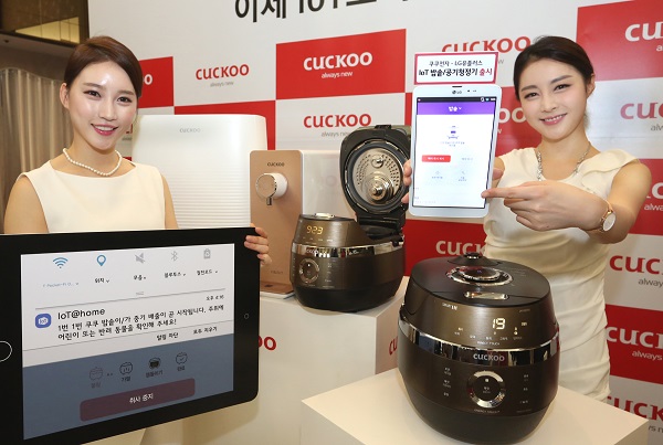 LG유플러스와 쿠쿠전자는 오는 26일부터 쿠쿠전자 전국 108개 직영점 및 백화점, 대형마트, 온라인 쇼핑몰 등과 LG유플러스 온라인 직영몰 ‘IoT Shop’을 통해 IoT 밥솥과 IoT 공기청정기를 먼저 출시한다. IoT 정수기는 7월 출시 예정이다.