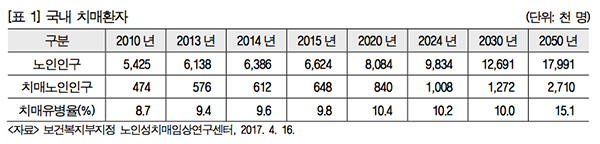 우리사회가 고령사회와 초고령사회로 바뀜에 따라 치매환자 또한 증가할 것으로 전망된다.