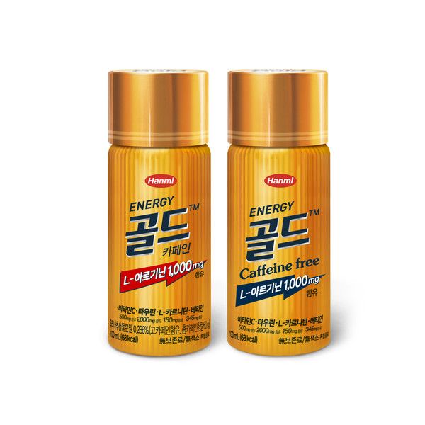 한미약품의 에너지골드는 약국에서만 유통되는 프리미엄 드링크제로, 카페인 함유 여부에 따라 2종으로 출시됐다.