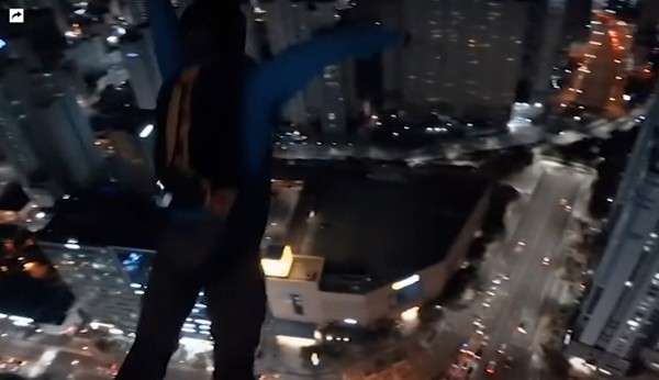 초고층 건물 옥상에서 낙하산을 매고 뛰어내리는 '익스트림 스포츠'를 즐기는 러시아인들이 부산 해운대 101층짜리 최고층 건물에서 낙하를 준비하다가 경찰에 체포됐다.