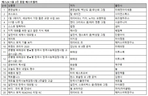 예스24 1월 3주 종합 베스트셀러에서는 인기 크리에이터 ‘흔한남매’의 세 번째 이야기 <흔한남매 3>이 3주 연속 1위의 자리를 지켰다.