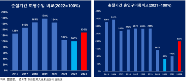 그래서 2023년 춘절 소비는 중국의 위드코로나로 방역정책 전환과 내수확대 경제정책의 시발점 소비라는 점에서 중요하다.