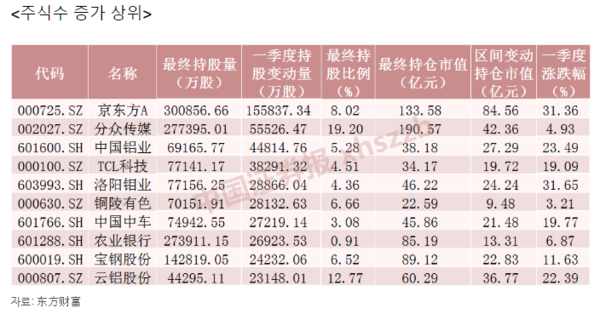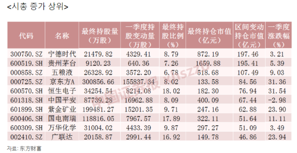 중국증시에 들어온 외국인들은 도대체 뭘사고 뭘 팔았을까? 1분기에 자금 순유입중 주식수증가 상위사를 보면 비철금속과 중자기업 그리고 은행이다. 시총증가 상위를 보면 배터리와 전통적인 중국내수의 시총대표기업이 많았다. 중국의 내수경기 회복에 대한 기대감이 반영된 것으로 보인다.
