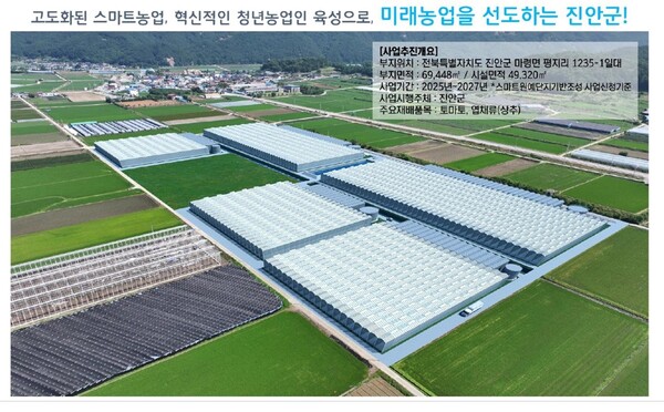전북특별자치도는 농림축산식품부의 2025년 스마트원예단지 기반조성사업 공모에 진안군이 선정되어 6.9ha 규모의 대규모 스마트팜단지를 조성하게 되었다고 밝혔다.
