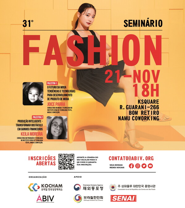 코참(KOCHAM, 브라질한국상공회의소. 회장 유건영)이 오는 11월 21일(목) 오후 6시부터 봉헤찌로 한인타운에 위치한 KSQUARE에서 제31회 패션세미나 및 패션쇼를 개최한다.