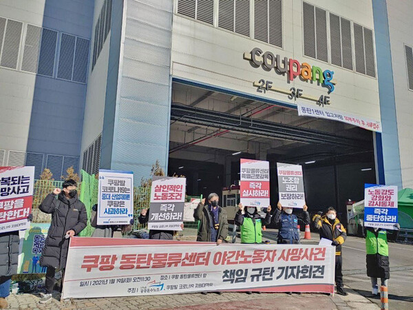 오늘도 새벽 하늘을 가르며 문 앞까지 도착하는 ‘로켓 배송’ 뒤에는 목숨을 내던지는 노동의 어두운 그림자가 드리워져 있다.