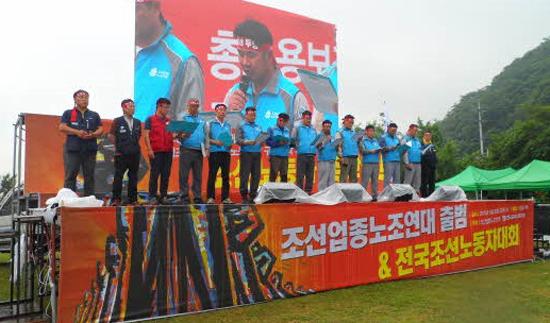 현대중 노조는 임협 난항과 함께 조선 노조 공동투쟁 참여를 위해 이날 오후 1시부터 4시간 파업을 벌였다.