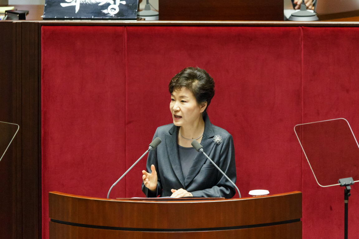 박 대통령은 이날 오전 국민의 대표기관인 국회에 출석해, 역사 교과서 국정화에 강력히 반대하는 새정치민주연합 등 야당 의원들을 정면으로 마주한 채 교과서 국정화의 필요성과 당위성을 설명했다.