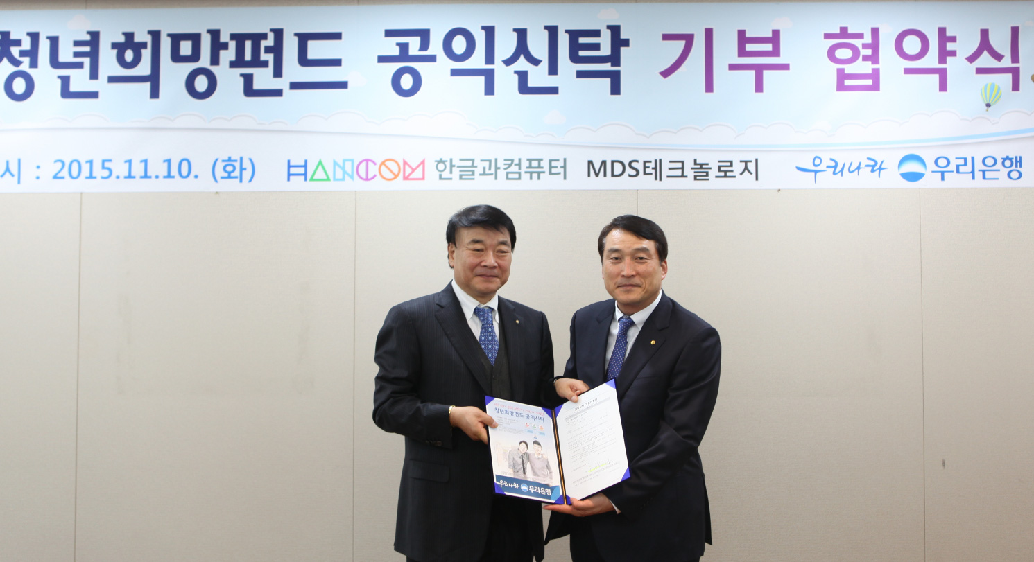 최근 5년간(2010~2014년) 적극적인 신규 채용을 통해 종업원이 60% 이상 증가하는 등 청년 고용을 통한 산업 발전에 앞장서 온 한컴과 MDS테크놀로지는, 정부가 추진하는 청년 일자리 창출을 위한 범국가적 노력에도 적극 부응하고자 청년희망펀드에 동참하게 되었다고 취지를 밝혔다.