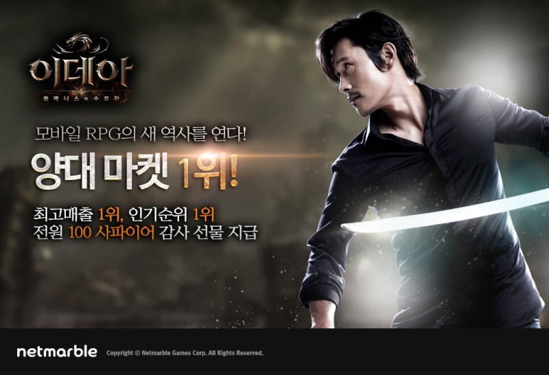 [뉴스비전e 김호성 기자] 넷마블게임즈(이하 넷마블, 대표 권영식)는 모바일 대작 RPG(역할수행게임) ‘이데아(개발사 넷마블앤파크)’가 국내 양대마켓인 애플앱스토어와 구글플레이에서 최고매출 1위를 석권했다고 밝혔다.