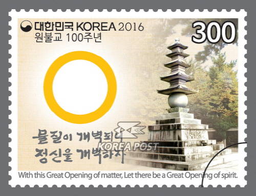 우정본부는 이번에 발행되는 우표는 전북 익산 원불교 본원에 있는 소태산 대종사 성탑과 일원상 및 개교표어를 소재로 했으며, 원불교의 상징인 일원상에는 금박과 엠보싱의 특수인쇄를 적용해 소장가치를 높였다고 밝혔다.