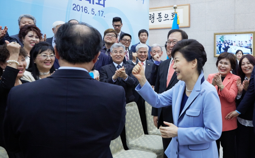 박근혜 대통령 : 여러분, 반갑습니다. 민주평통 미주지역 자문위원 여러분의 청와대 방문을 진심으로 환영합니다. 자문위원 여러분은 이역만리 타향에서 한민족 특유의 강인한 정신력과 근면성으로 성공을