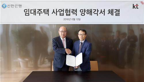 신한은행과 KT는 임대주택을 위한 사업부지와 사업에 필요한 자금조달, 임대주택 개발 및 운영업무 등에서 협력하기로 했다.