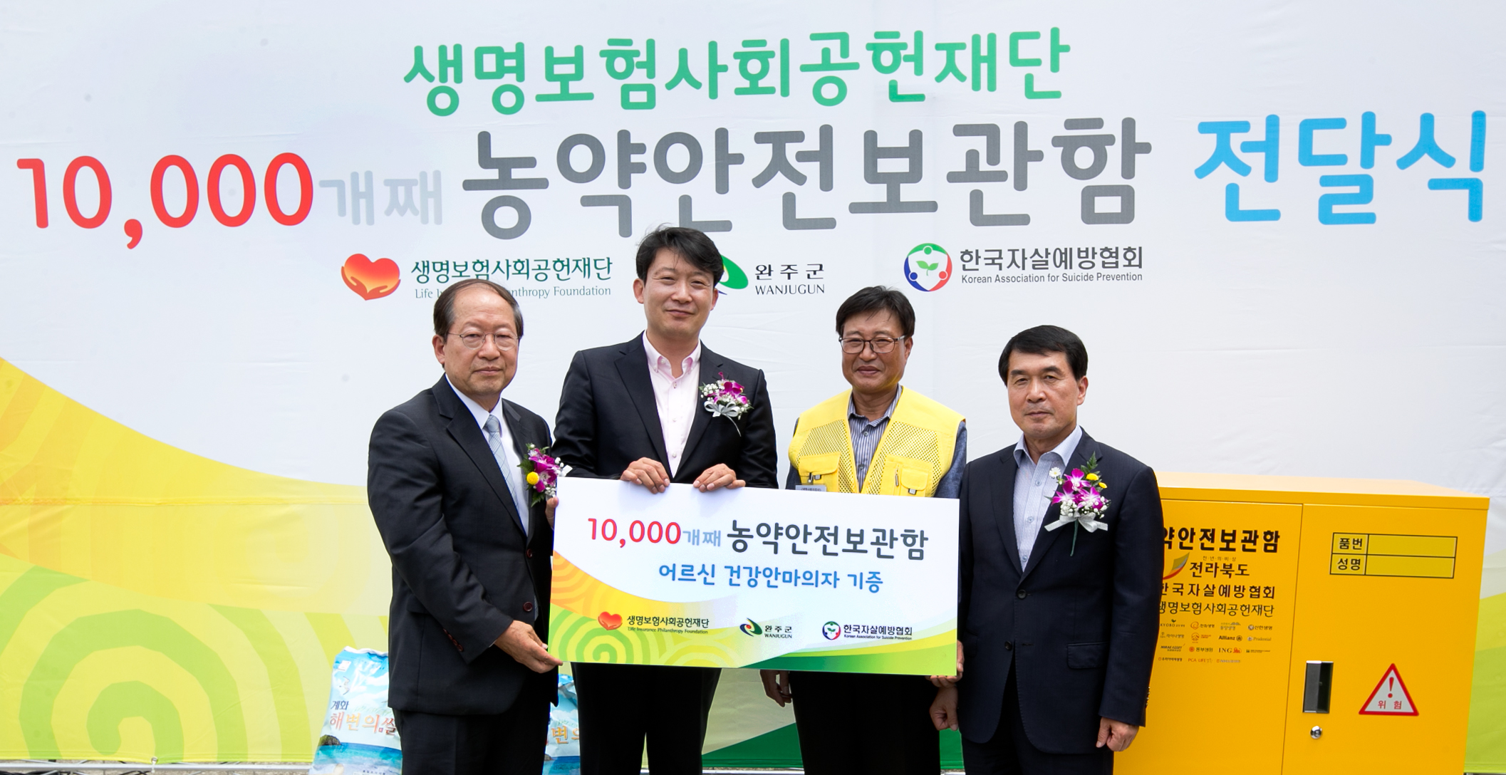 농약안전보관함 보급사업은 농촌 노인들의 충동적인 음독자살을 예방하기 위해 잠금장치가 설치되어 있는 보관함을 각 가정에 보급하는 사업이다. 생명보험재단은 자살기도방법 중 농약음독으로 인한 자살이 15.4%로 두 번째를 차지하며, 중소도시 특히 농촌지역의 농약음독으로 인한 자살은 대도시보다 약 3배가량 높다는 것을 알고 지난 2010년부터 농촌 노인의 음독자살을 막기 위해 지속적으로 본 사업을 펼치고 있다고 전했다.