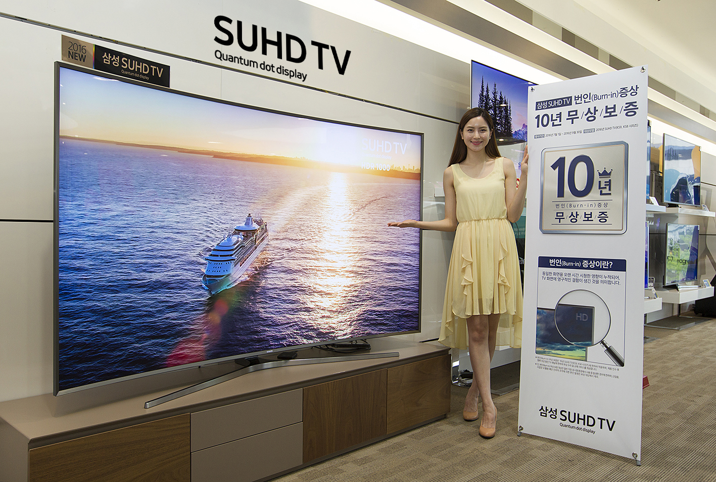 삼성전자가 화면 '번인(Burn-in)'현상에 대해 2016년형 퀀텀닷 SUHD TV 구매 고객을 대상으로 10년간 무상보증 프로그램을 시작했다고 5일 밝혔다.