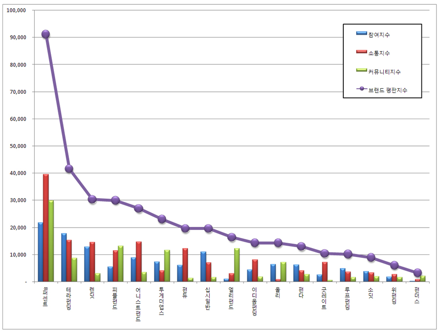 1위, 8퍼센트 브랜드는 참여지수 21,700 소통지수 39,501 커뮤니티지수 29,938로 브랜드평판지수 91,139가 되었다. 지난 7월 브랜드평판지수 85,198와 비교해보면 6.97% 상승했다.