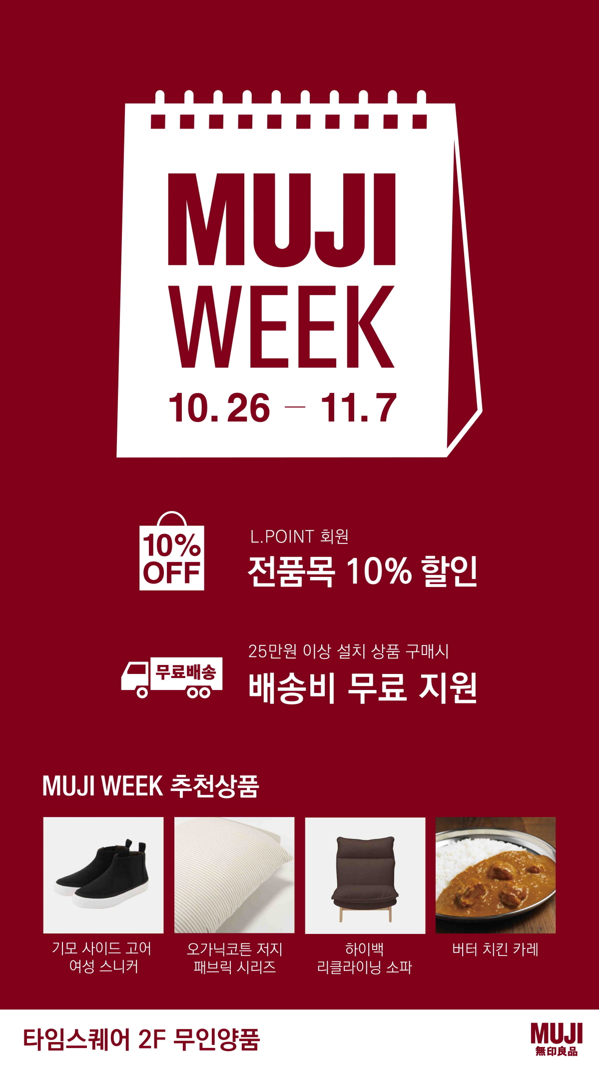 라이프스타일숍 ‘무인양품’은 다음달 7일까지 연중 단 2회 진행되는 ‘무지위크’ 행사를 개최한다. 특히 엘포인트(L.POINT) 멤버스 카드를 소지한 고객의 경우 전품목 10% 할인 혜택을 받을 수 있으며, 무지위크 기념 특가 상품에도 추가 적용이 가능하다.
