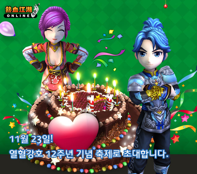 [뉴스비전e 김호성 기자] 엠게임(대표 권이형)은 코믹 무협 MMORPG(다중접속역할수행게임) ‘열혈강호 온라인’의 서비스 12주년을 맞아 오늘 23일(수)부터 기념 이벤트를 실시한다고 밝혔다.